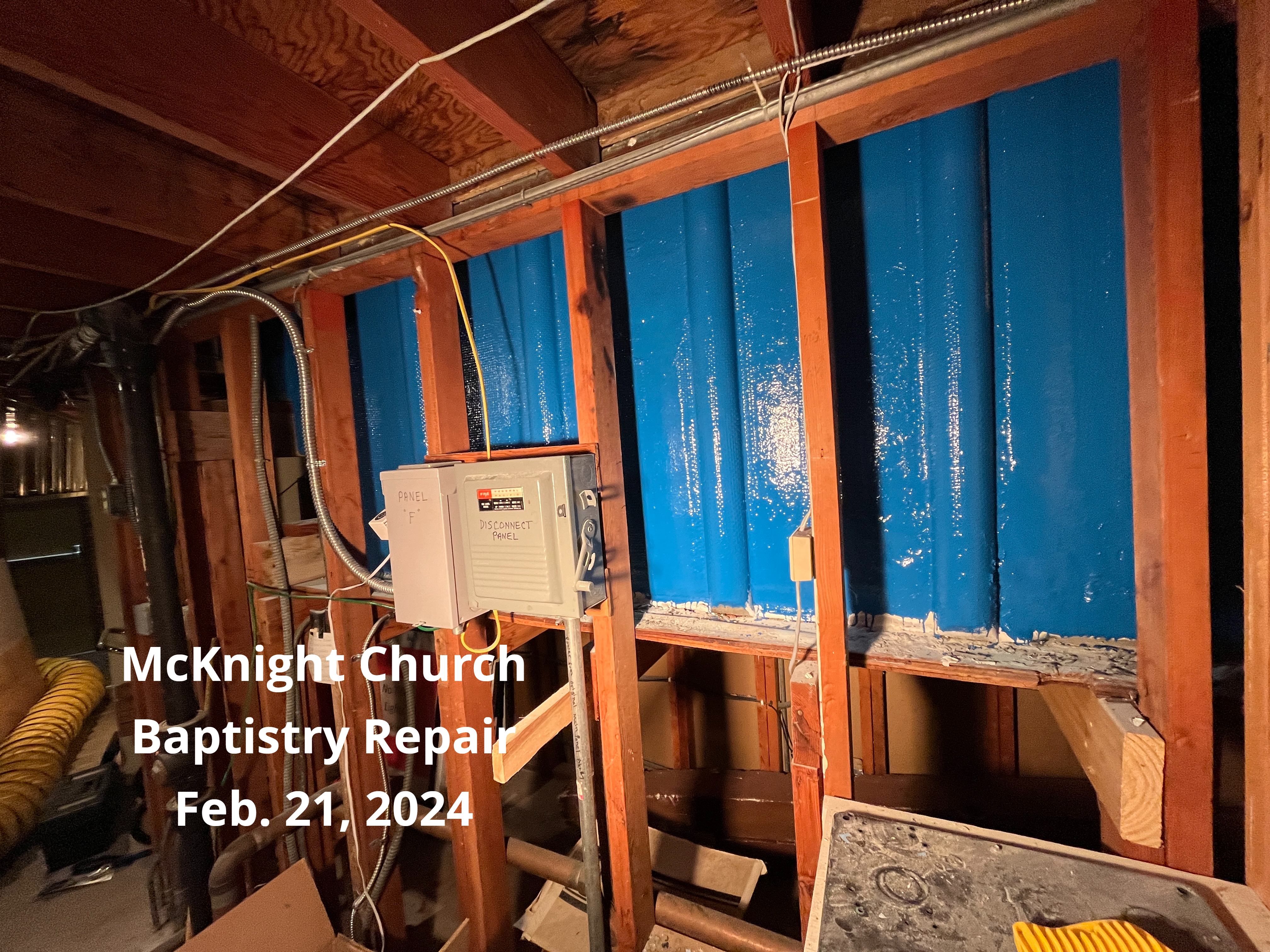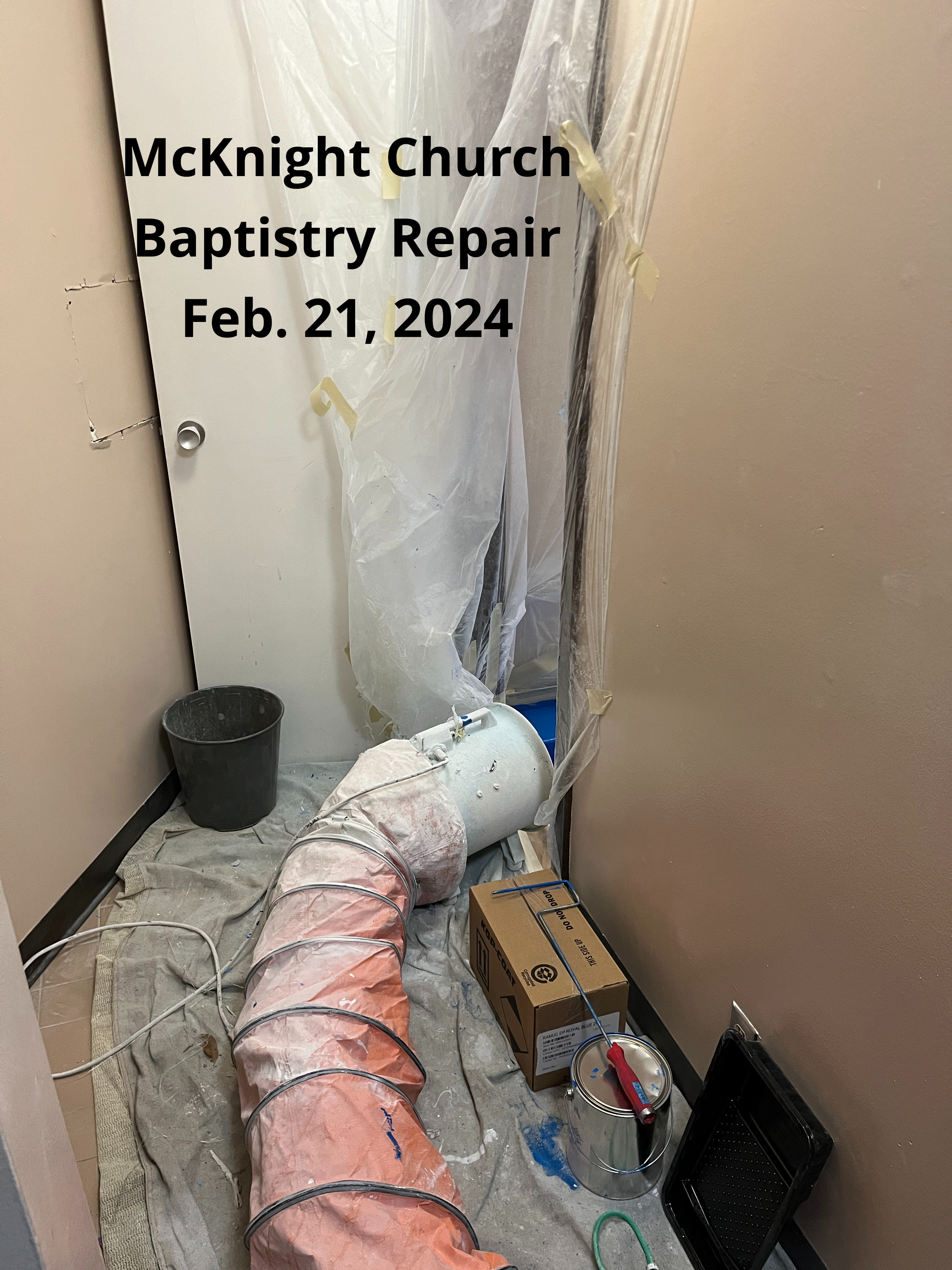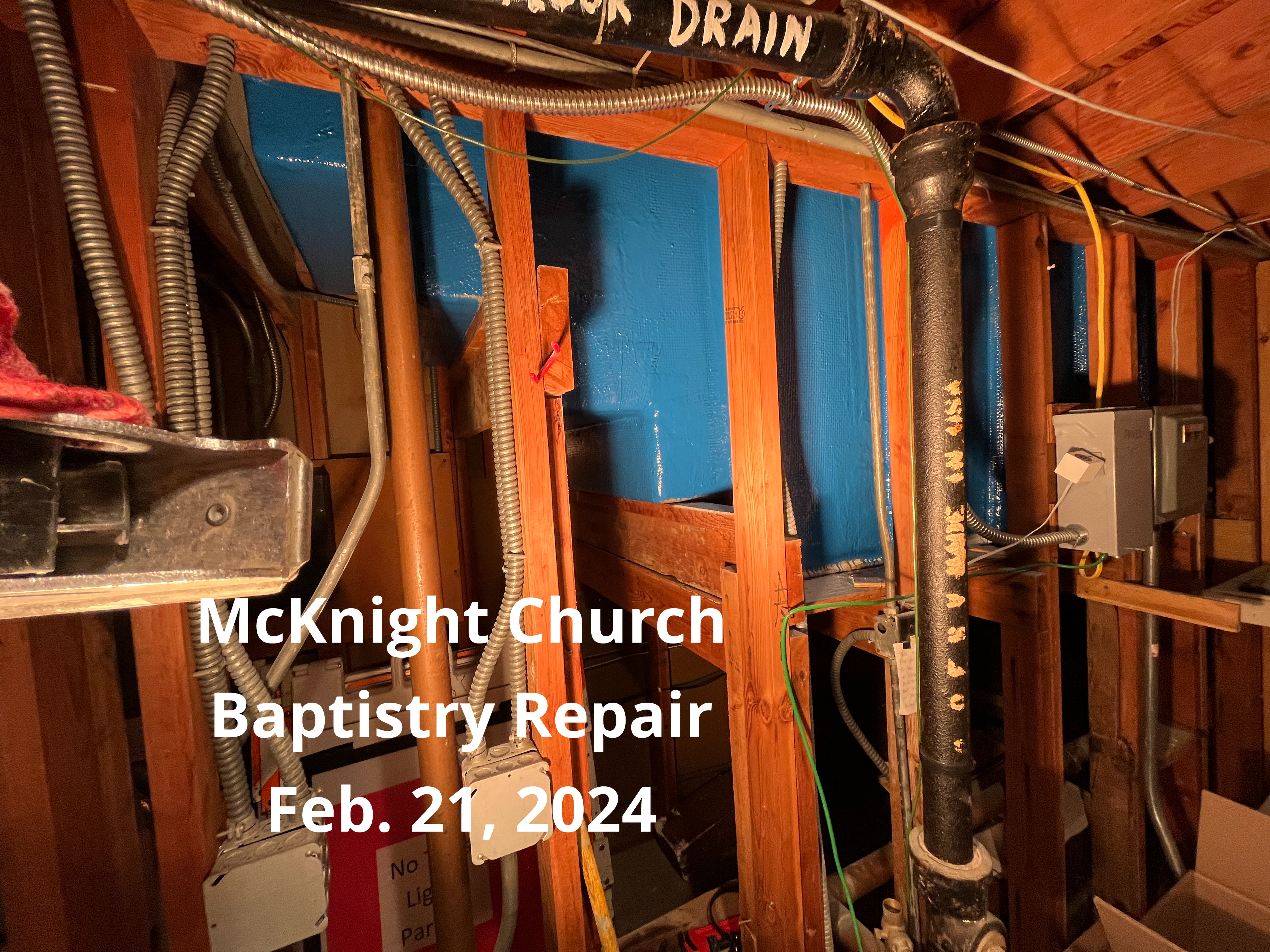 In November 2023 it was noticed that the baptismal pool was slowly leaking. Up to that point the pool
