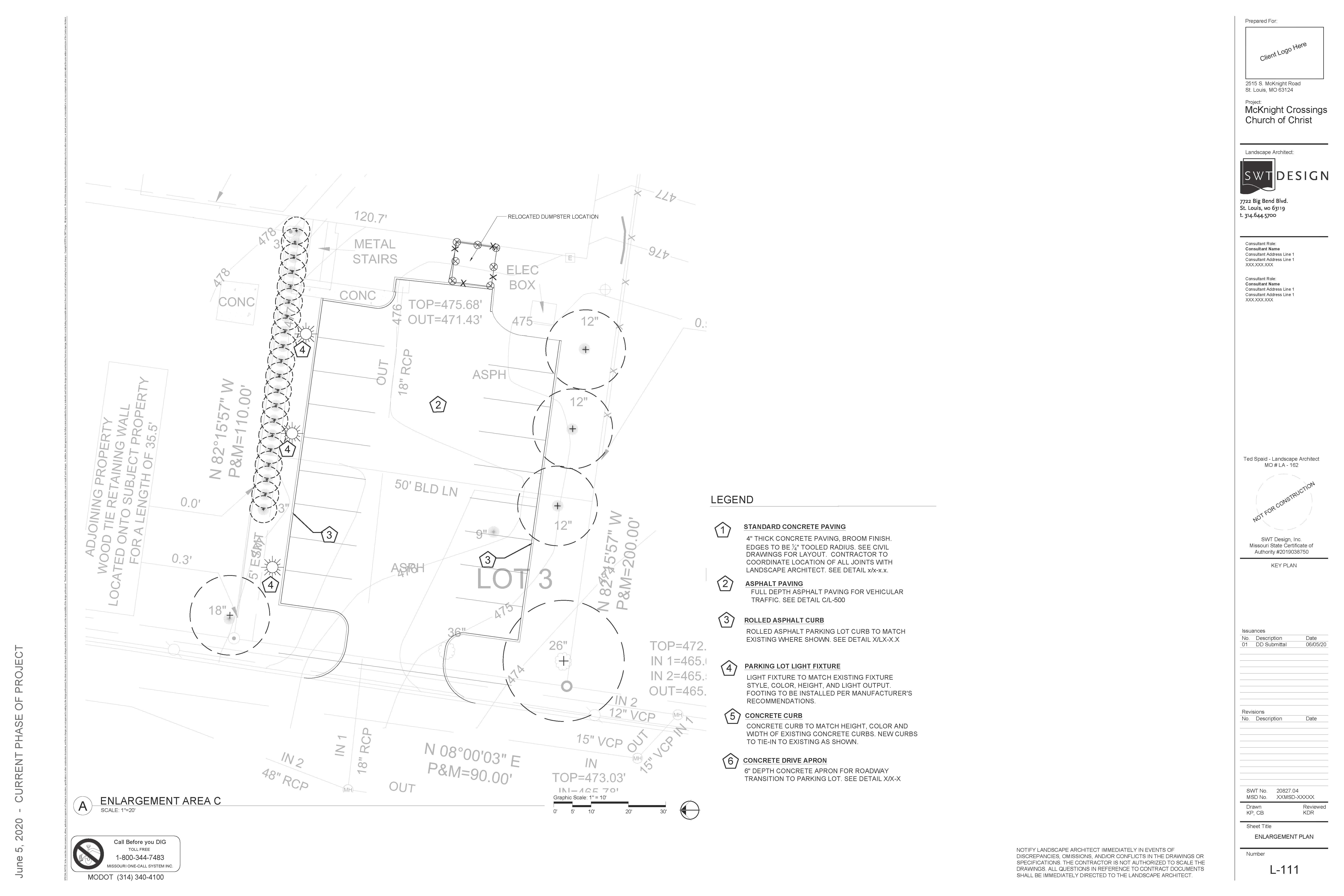 Below are preliminary examples of parking lot changes at the MX Church building - goal is to increase parking space. Click a drawing below to enlarge. [.pdf file of all drawings here]